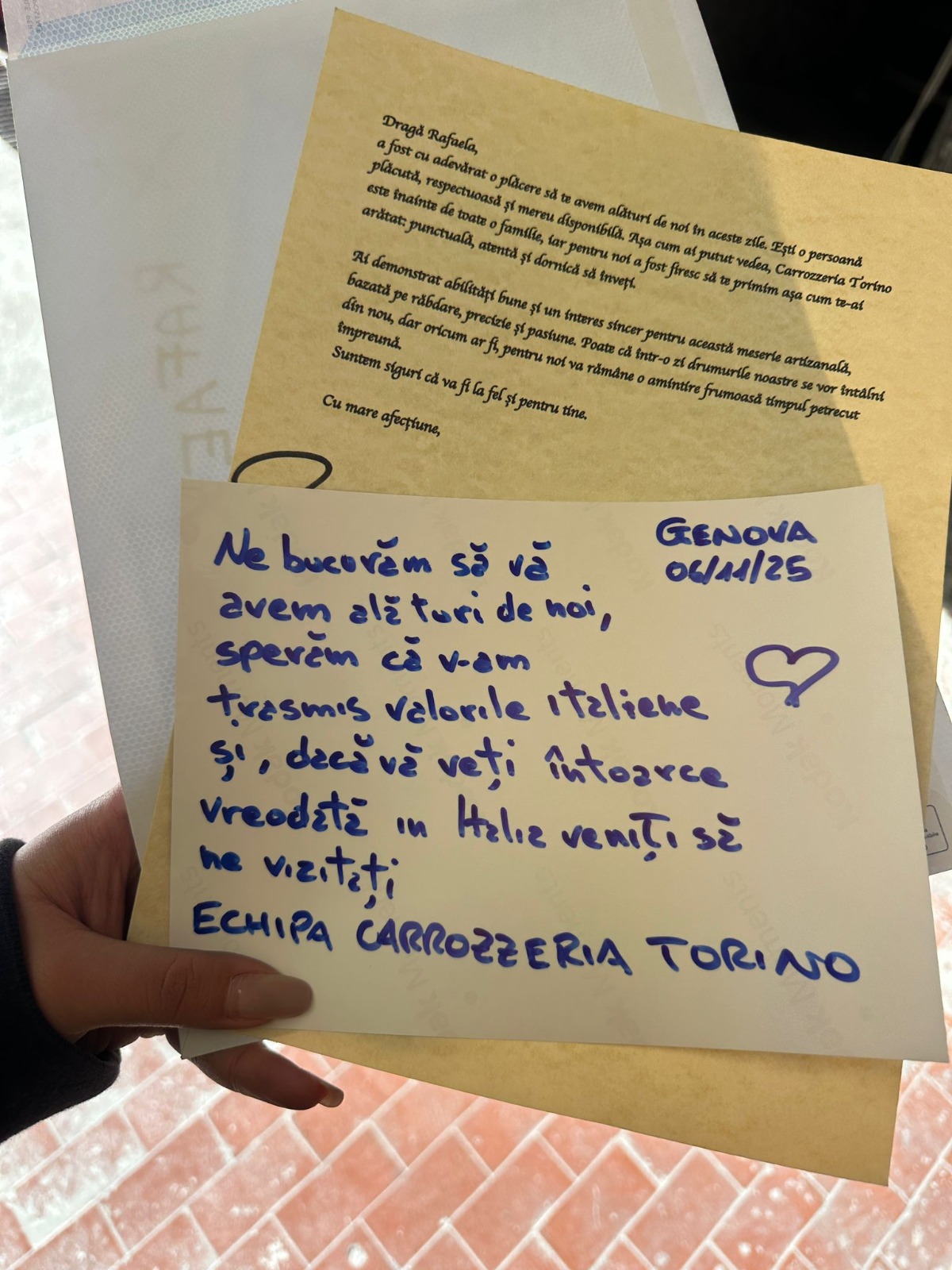 Timp de trei săptămâni, aceștia au desfășurat activități practice în service-uri partenere, având ocazia să observe și să participe direct la procese reale de lucru. Sub îndrumarea tehnicienilor italieni, elevii au pus în aplicare cunoștințele dobândite în școală, au lucrat cu aparatură modernă de diagnoză, au efectuat operațiuni de întreținere și au urmărit fluxul complet al intervențiilor dintr-un atelier auto profesionist.